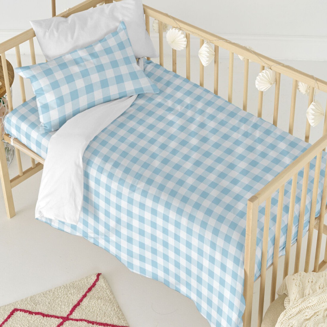 Parure de couette HappyFriday Basic Kids Bleu Lit de bébé Vichy 2 Pièces