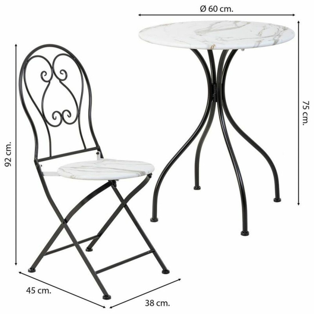 Ensemble Table + 2 Chaises Alexandra House Living Blanc Noir 60 x 75 x 60 cm