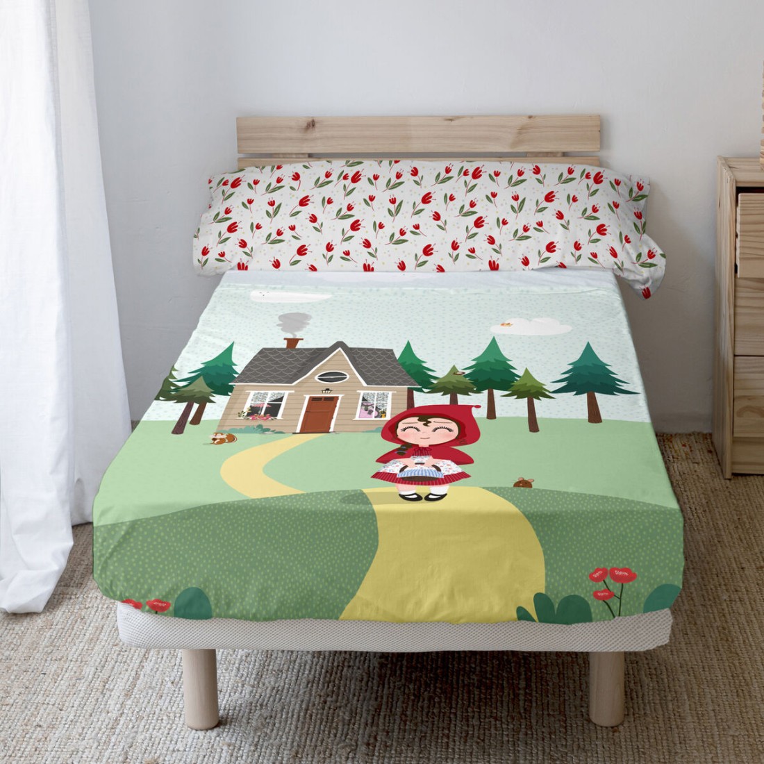 Set beddengoed HappyFriday Mr Fox Red Riding Hood Multicolour Bed van 80/90 2 Onderdelen